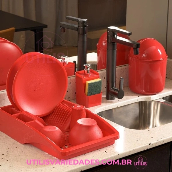 O Kit 3 Peças UZ — Vermelho combina funcionalidade e estilo marcante. Ideal para quem ama cozinha com personalidade — e tudo organizado!